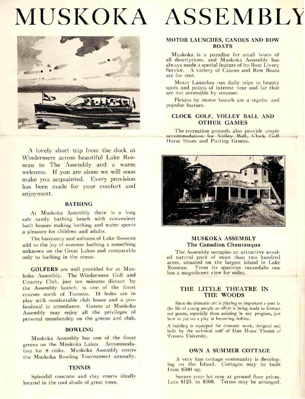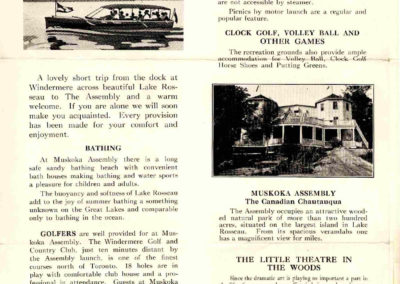 The Chautauqua movement has a long history in Muskoka. At the turn of the 20th century, Muskoka was known as Canada’s Literary Summer Capital. In the years 1916 and 1917 conferences were held at Windermere House and Elgin House to provide study, sport and spiritual uplift.