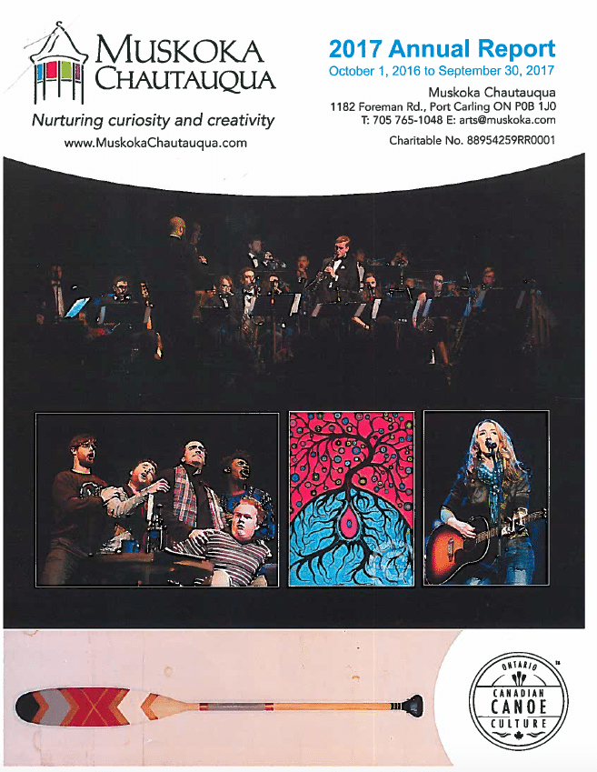 communities to present innovative, multi-disciplinary arts-based programs that inspire lifelong learning, well-being and resiliency by celebrating creativity and Muskoka’s heritage and natural environment.
